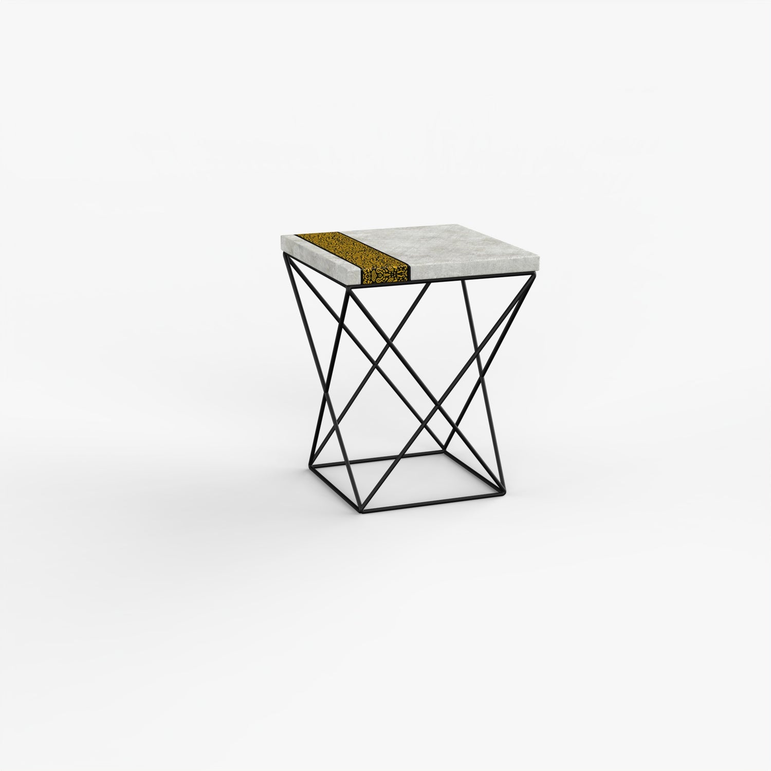 Anu Side Stool is a sturdy, minimalist, hand crafted stool. Its made of lightweight concrete with Matt black, rust proof, origami metal base. Its suitable for indoor and outdoor spaces.